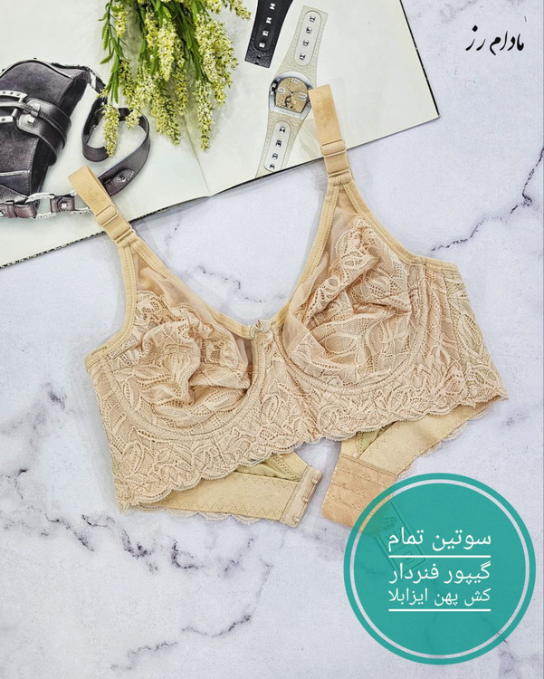 ▫️سوتین تمام گیپور فنردار کش پهن ایزابلا